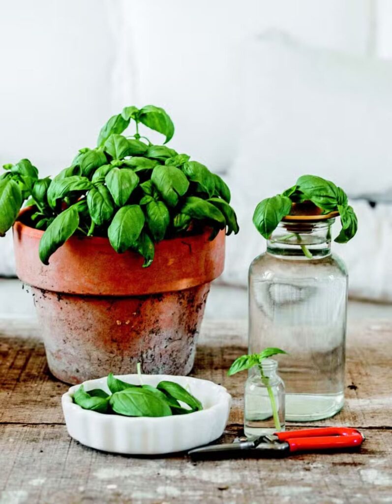 لا تكاد تخلو وصفة متوسطية من الريحان الطازج. يمكن إكثاره بسهولة من خلال عُقَل صغيرة بطول 8 إلى 10 سم. بعد إزالة الأوراق السفلية، ضع الساق في كأس ماء حتى تظهر الجذور خلال أسبوعين تقريبًا، ثم انقله إلى أصيص بتربة جيدة. الريحان يحب الضوء غير المباشر والري المنتظم، لكن تجنب بلل أوراقه لتفادي الآفات.